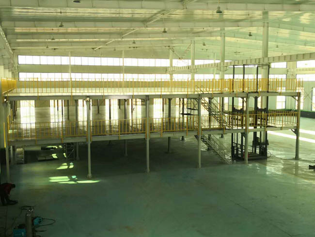 鋼結(jié)構(gòu)平臺(tái)亦稱工作平臺(tái),通常是在現(xiàn)有的倉(cāng)庫(kù)場(chǎng)地上再建一個(gè)二層或三層的全組裝式鋼結(jié)構(gòu)平臺(tái),將使用空間由一層變成兩層,三層,使空間得到充分利用,貨物由叉車和升降臺(tái)的貨梯送上二樓、三樓,再由小車或液壓拖板車運(yùn)送至指定位置。此種平臺(tái)立柱間距通常在三到五米以內(nèi),層高可根據(jù)具體要求度身定制,廣泛應(yīng)用于第三方物流,機(jī)械制造等各行業(yè)。